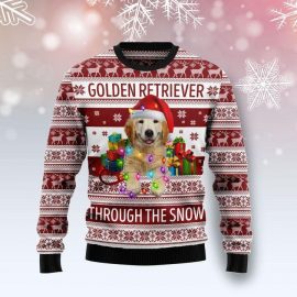 Golden Retriever Dog Through The Snow Ugly Christmas Sweater | For Men & Women | Adult | US1785