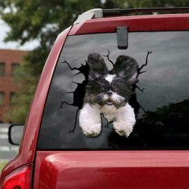 Funny Black White Shih Tzu Dogs Cracked Car Decal Sticker | Waterproof | Easy Install | PVC Vinyl | CCS2297