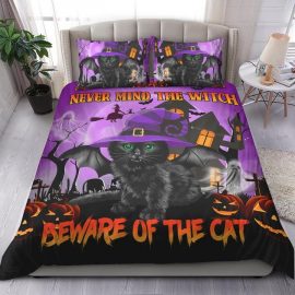 Never Mind The Witch Beware Of The Cat Halloween Bedding Set QDH