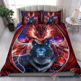 Gift For Wolf Lover Gift For Dragon Lover Blue Red Wolf Dragon Bedding Set CHM