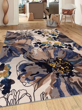 Floral Cream Multicolor Anti-Skid Plush Velour Area Rug | AR1927