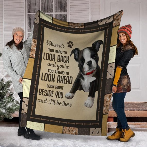 When It’s Too Hard To Look Back Boston Terrier Dog Fleece Blanket | BK3237